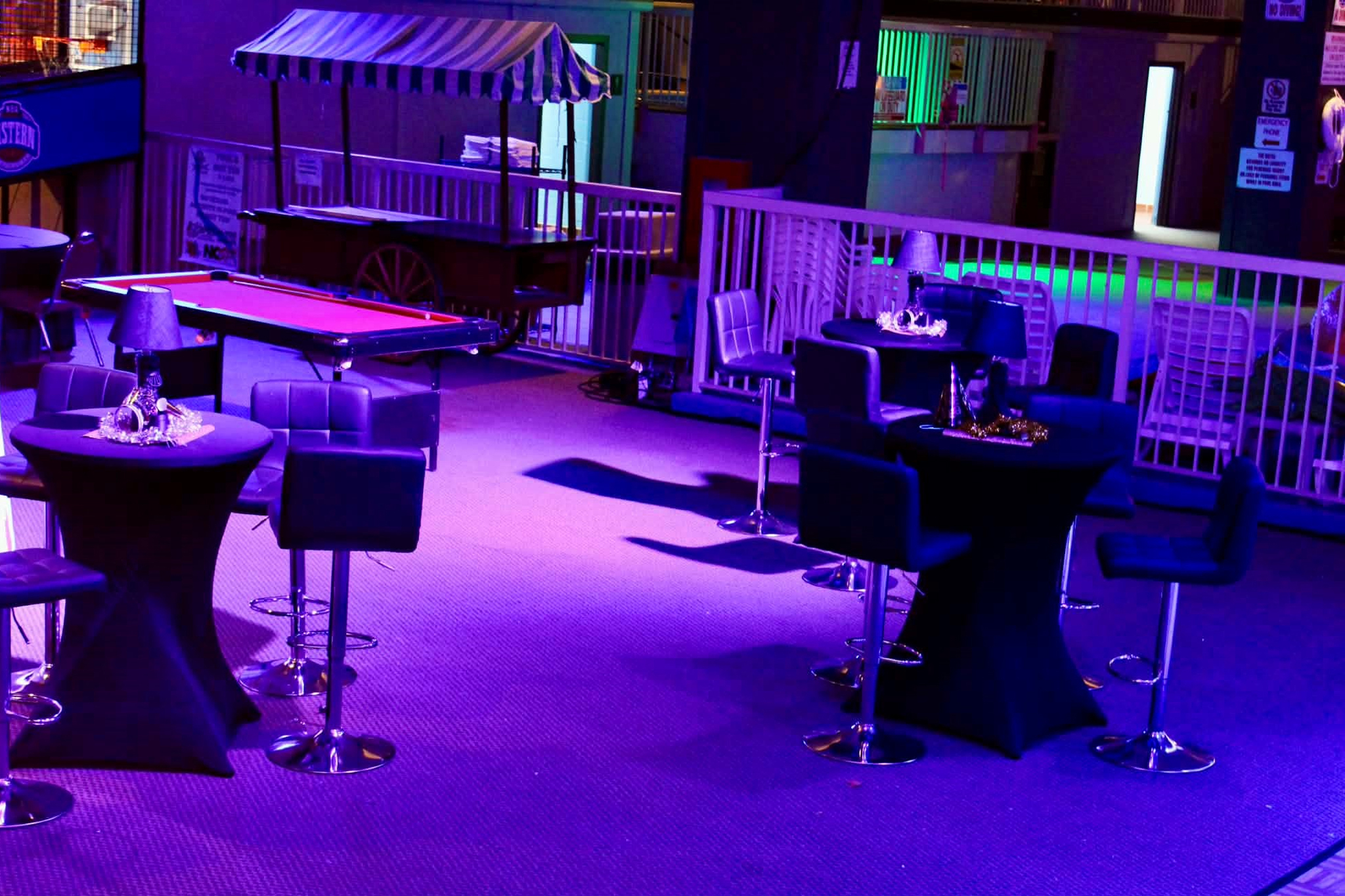 Billiards, foosball, cornhole, giant games, Kandi bracelet station & arcade